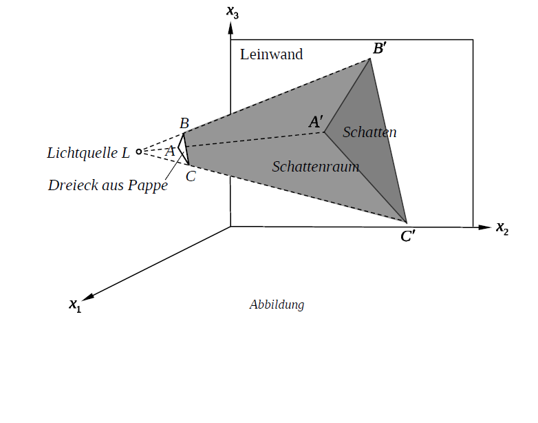 In dieser Aufgabe ist die Leinwand Teil der xy-Ebene, die Position der Lichtquelle ist